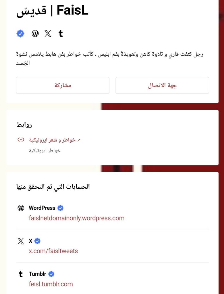 نبذة عني رجل كنفث قاري و تلاوة كاهن وتعويذةٌ بفم ابليس ، كآتب خواطر بفن هابط يلامس نشوة الجّسد شارك هذا الموضوع: المشاركة على X (فتح في نافذة جديدة) X شارك على فيسبوك (فتح في نافذة جديدة) فيس بوك إعجاب تحميل... شارك هذا الموضوع: المشاركة على X (فتح في نافذة جديدة) X شارك على فيسبوك (فتح في نافذة جديدة) فيس بوك إعجاب تحميل...